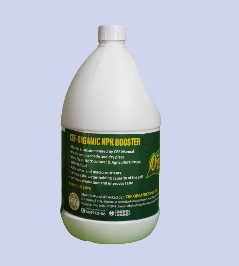 CEF Organic NPK Booster is an organic liquid fertilizer enriched with micro and macro-nutrients. It works as a super booster for plants, eliminating nutrient deficiencies and promoting healthy growth.